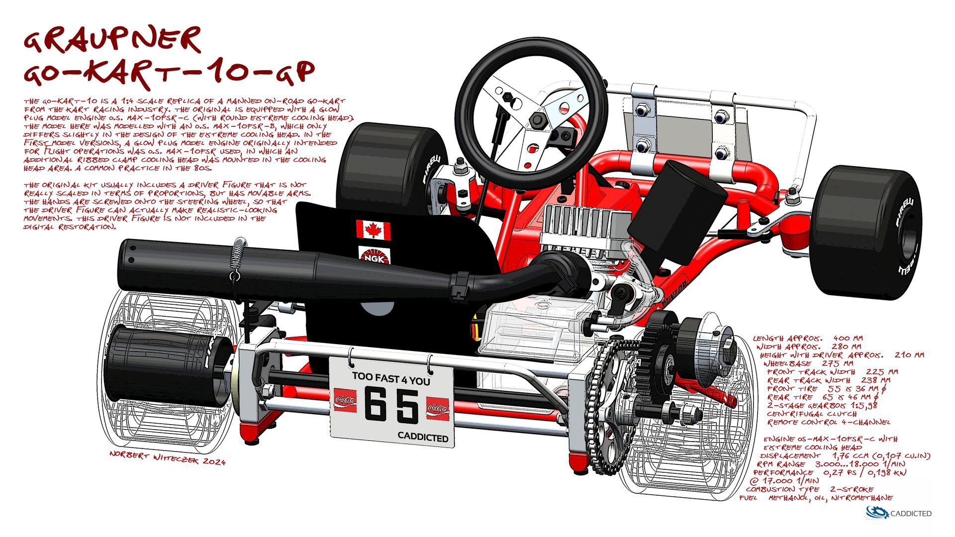 Das GO-KART-10 von 1980 ist der Nachbau im Maßstab 1:4 eines manntragenden Glattbahn Go-Kart aus der Kart Rennsportbranche.