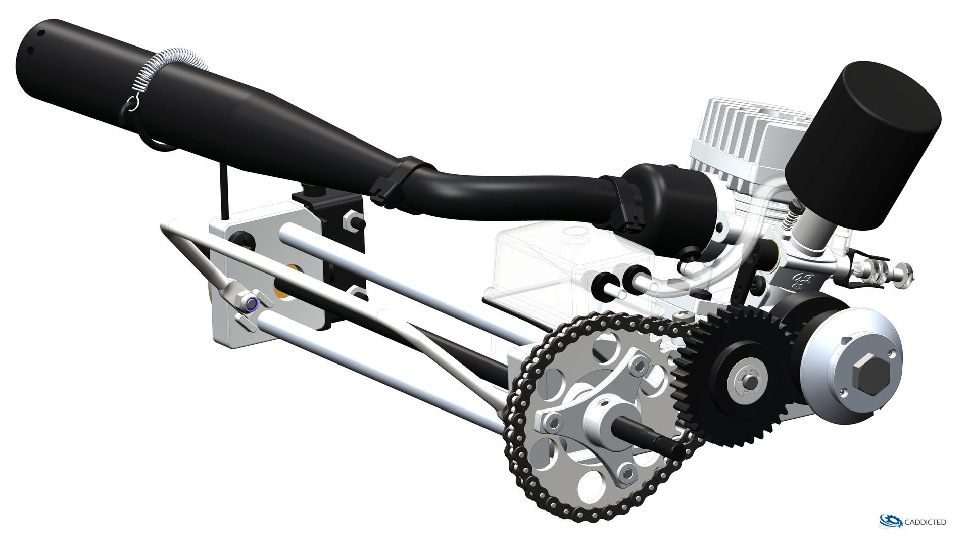 The original is equipped with a glow plug model engine O.S. MAX-10FSR-C (with round extreme cooling head). The model here was modelled with an O.S. MAX-10FSR-B, which only differs slightly in the design of the extreme cooling head. In the first model versions, a glow plug model engine originally intended for flight operations was O.S. MAX-10FSR used, in which an additional ribbed clamp cooling head was mounted in the cooling head area. A common practice in the 80s.