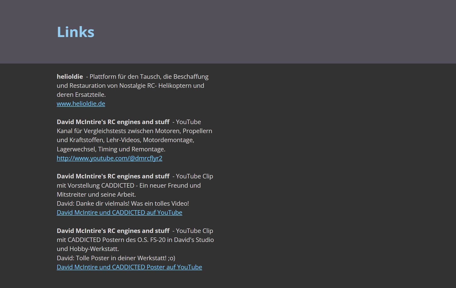 Through my work on the CAD images and the blueprints, I have made some contacts with really great people in Europe and the USA. That gave me the idea of creating a separate website for links. Regardless of any SEO strategies for search engine optimization, I find it helpful to establish contacts with the associated websites bit by bit via link lists.