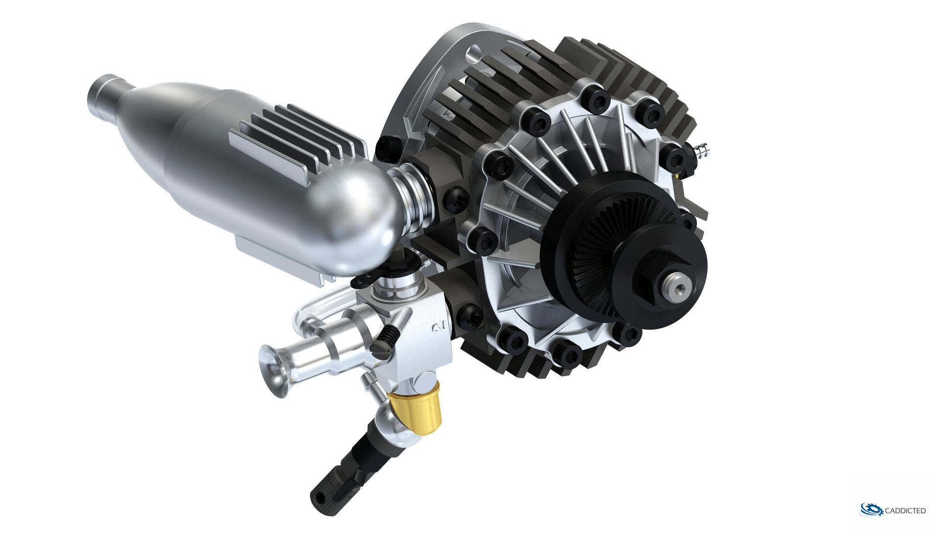 The GRAUPNER aircraft engine is next to the OS-RE-49 and the OS-RE-49-PI-II the second rotary piston model engine produced in series for model making based on the principle developed by Dr. Felix Wankel, which corresponds to the four-stroke system. Its outstanding features are its powerful running, the almost complete absence of vibration and the effective soundproofing.