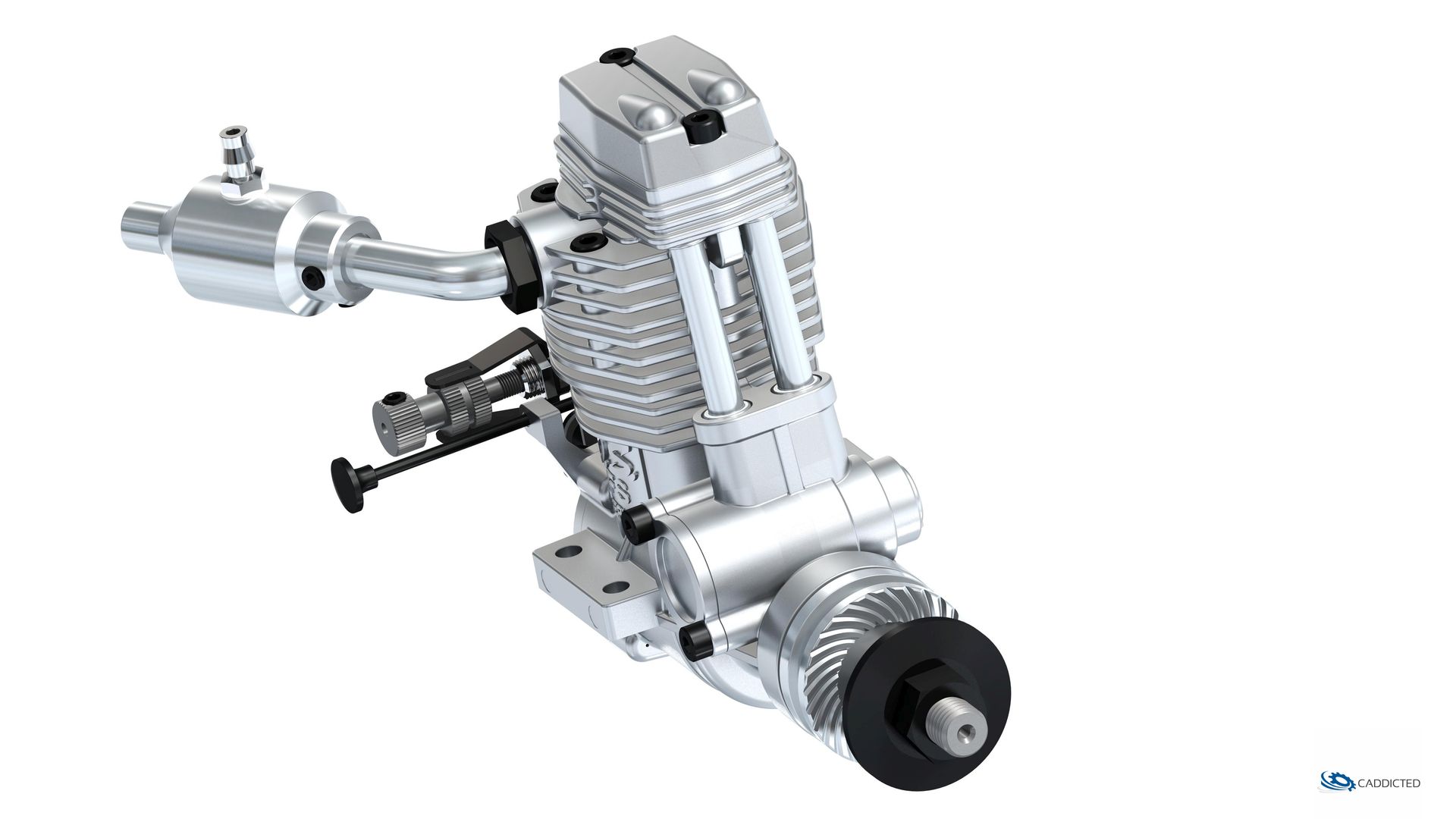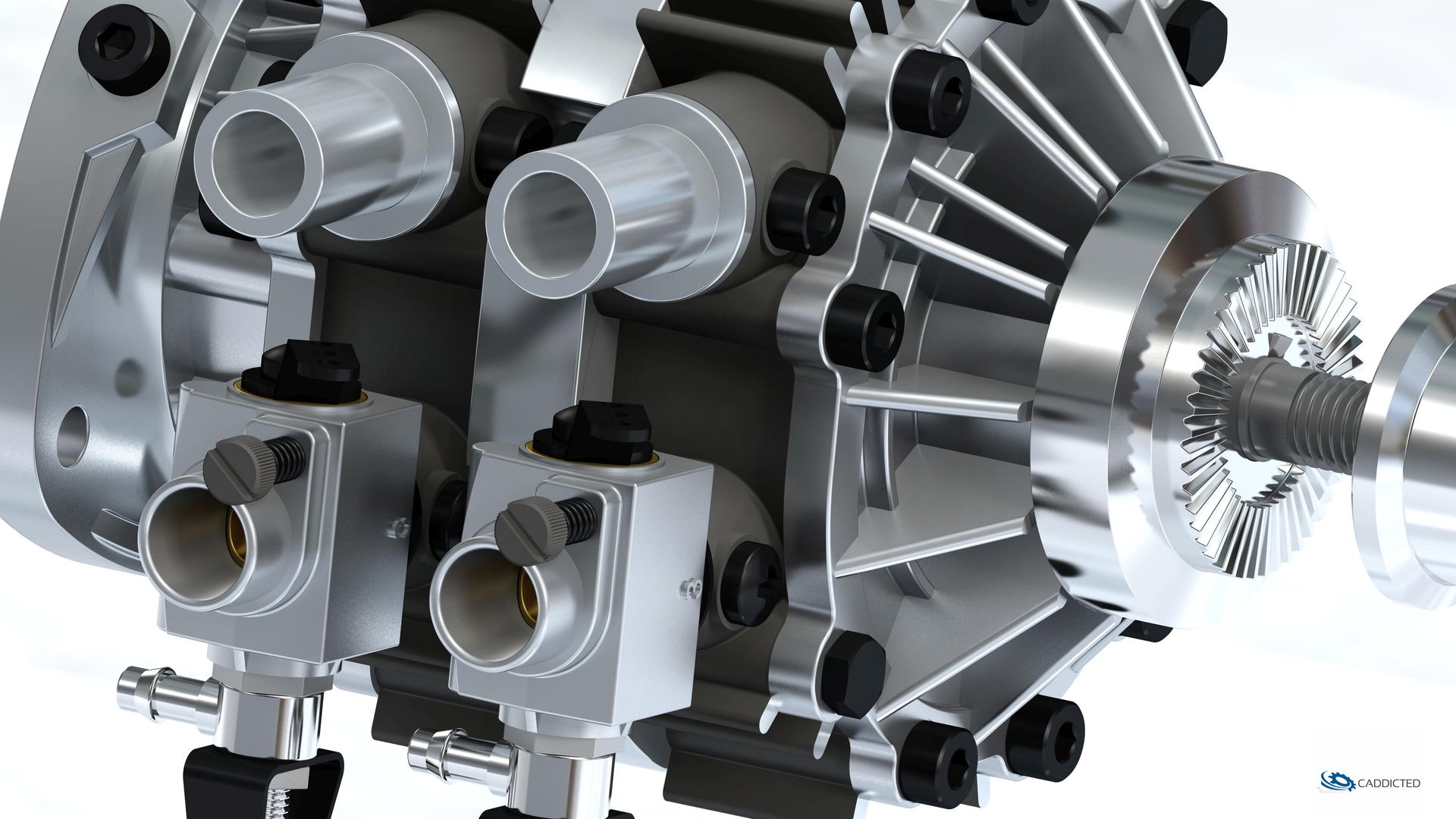 The 2-cylinder or better 2-disc version of the ROTARY 49-PI is a version manufactured exclusively by Valentine Motors in the USA. All essential parts such as the rotor, carburetor, trochoid stator housing and bearings are identical to the ROTARY 49-PI version. A special center plate and a 2-part crankshaft were designed to create a 2-disk version. The center plate allows the trochoid stator housing to be screwed together force-fit at the front and rear, thus ensuring that the engine is leak-proof. Only tube pieces are mounted as silencers, which allow an application-specific design of a silencer system.