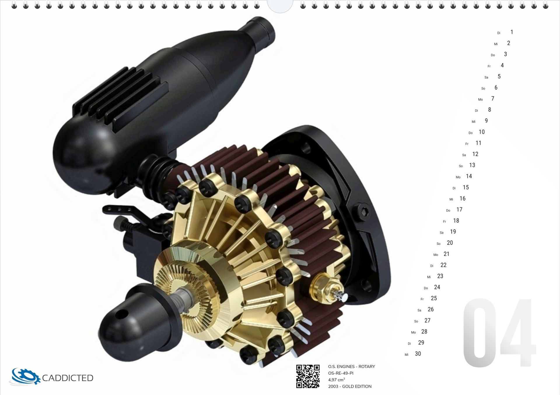 CADDICTED Passioncalendar with selected rendering images from the engines that have been digitally restored so far, especially the O.S. ENGINES Rotary series.