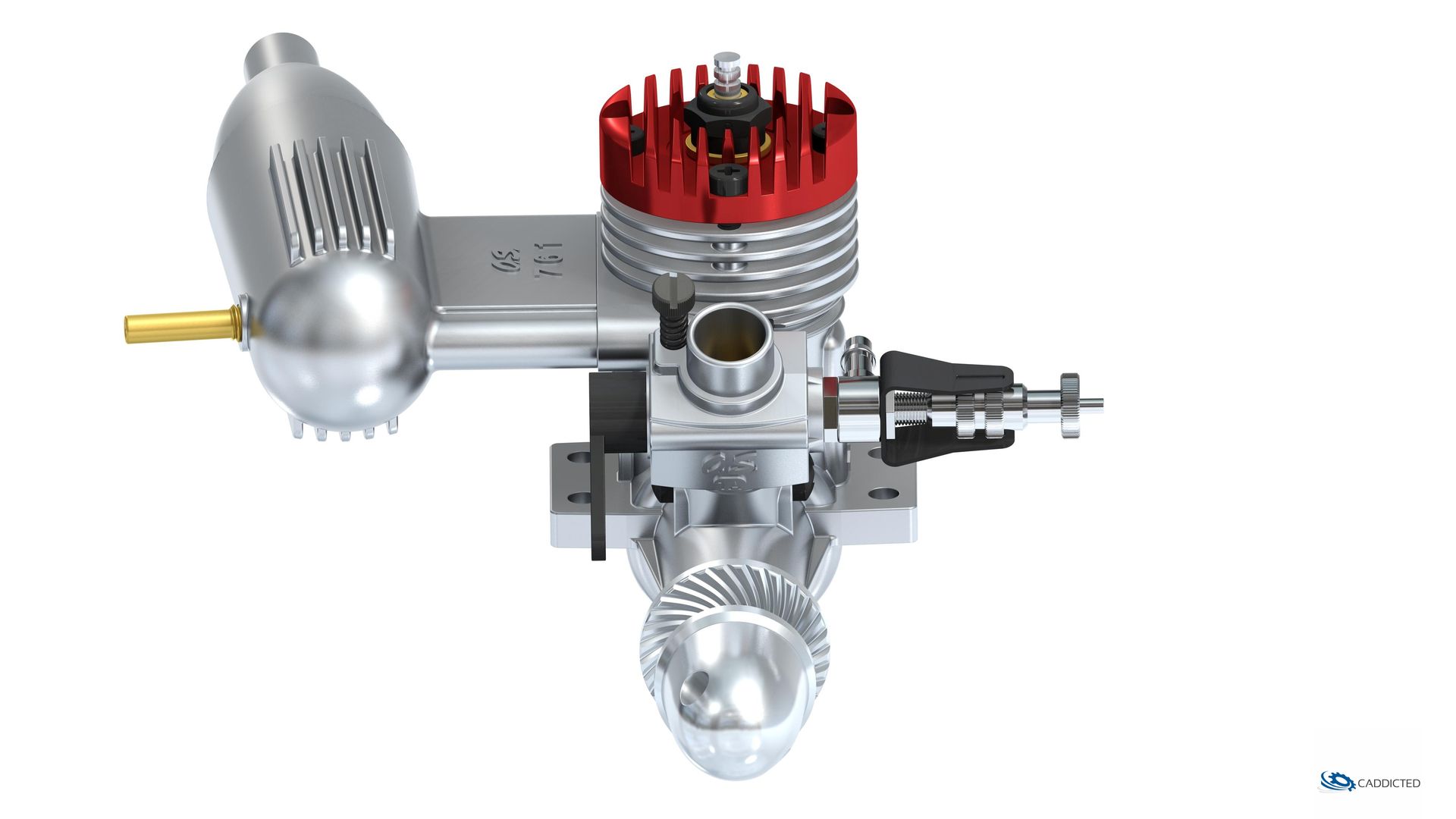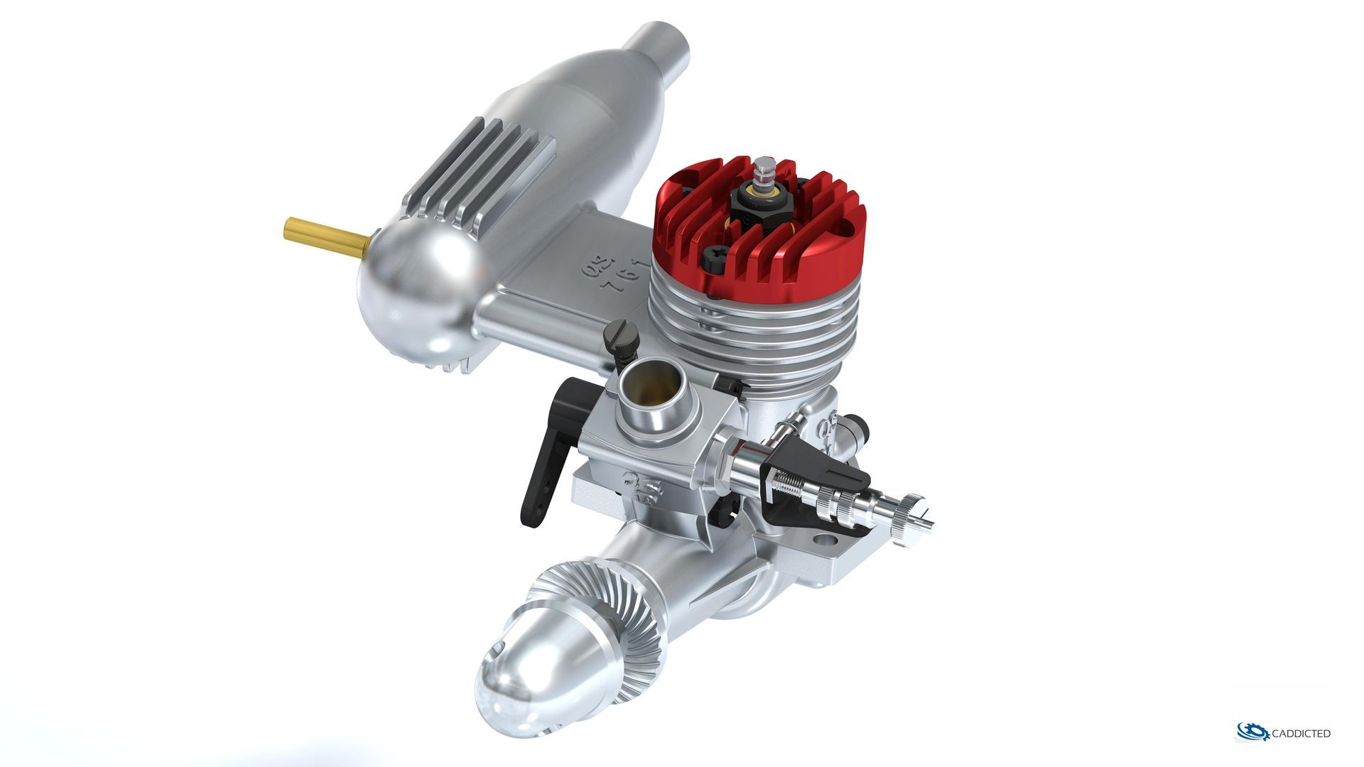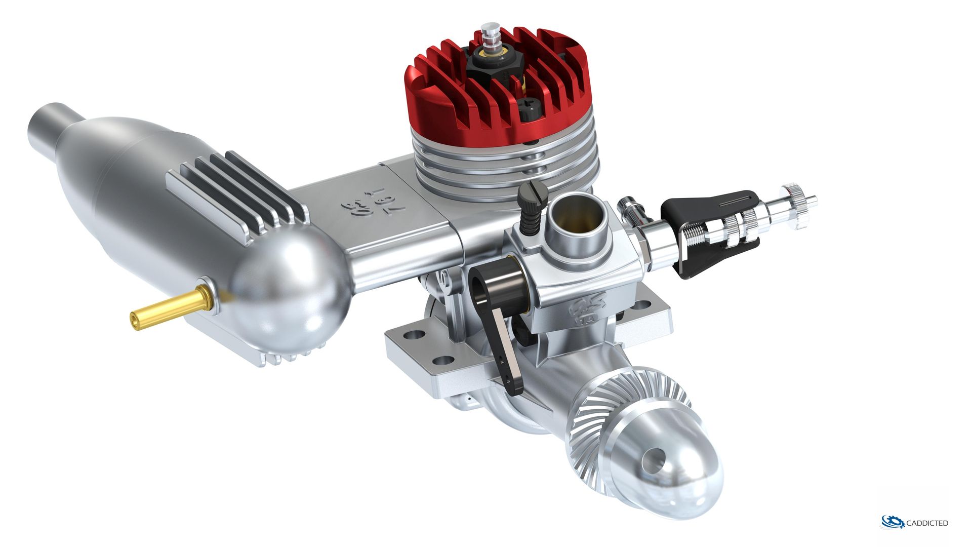 Motoren. Den roten Zylinderkühlkopf gab es nie in Realität, aber so sehen die Renderings einfach besser aus. Diese Version besitzt im Gegensatz zum FSR-S einen steuerbaren Vergaser mit Trommelküken und Gemischnadel.